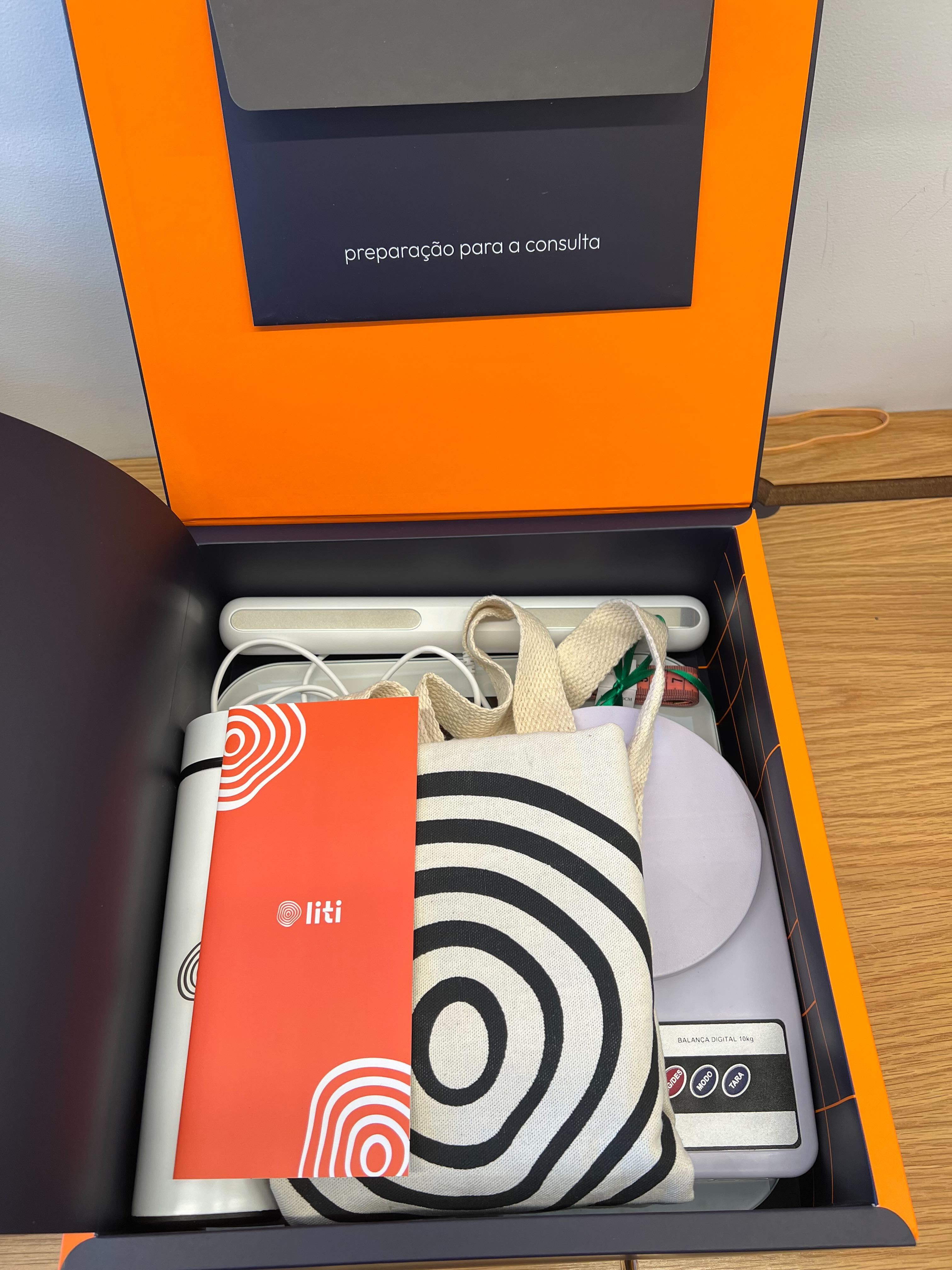 E o mais legal é que a Bia consegue acompanhar em tempo real como essas alimentações estão afetando meu corpo, já tenho um chat 24h com ela (em que posso relatar tudo que estou sentindo e tirar dúvidas) e uma balança da Liti em casa que se conecta com o app, e envia todas as pesagens em tempo real para meu time de saúde, que sabe se o protocolo está me trazendo resultados. Essa balança veio num kit super legal que todos os clientes recebem, que vem também com balança de alimentos, fita métrica e vários mimos para incentivar o início dessa mudança de estilo de vida.